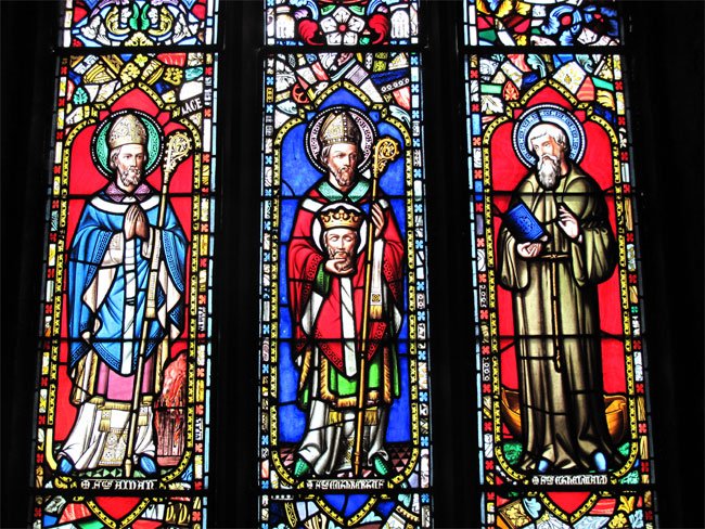 Close-Up of Stained-Glass Window Inside St. Cuthbert's Chapel on Inner Farne Island, Northumberland, England (J. Demetrescu 2013)