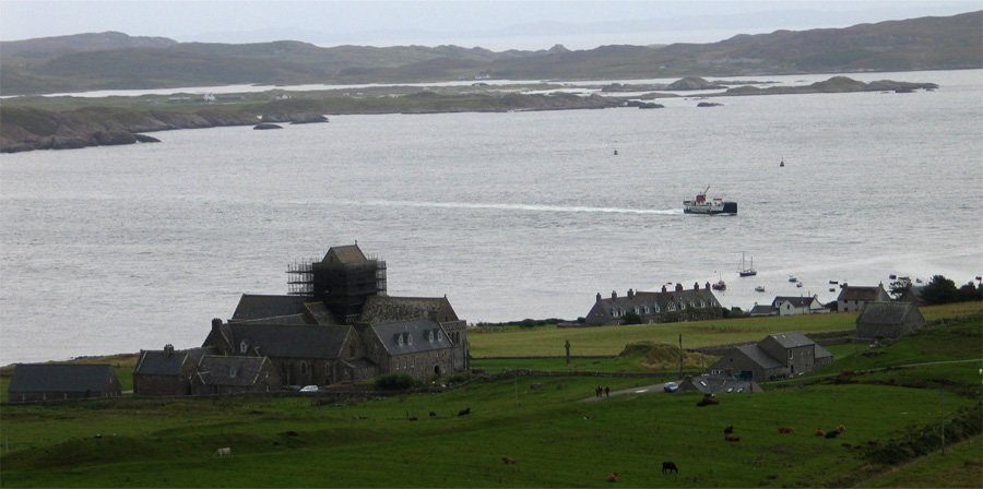 Iona is a small island located one mile southwest of the larger Isle of Mull in Argyll and Bute off Scotland's West coast. Iona is accessible only by ferry from Mull, which is accessible by ferry from Oban on the Scottish mainland.