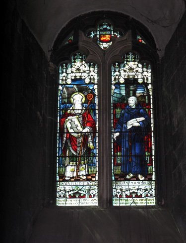 Stained-Glass Window of St. Aldhelm and William of Malmesbury, Malmesbury Abbey, Wiltshire, England (J. Demetrescu 2011)