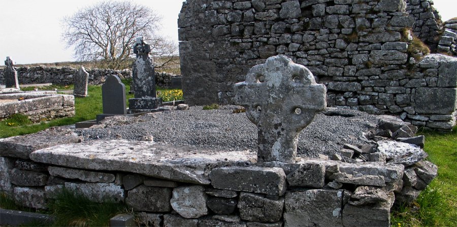 Ancient Ringed Cross on Leacht Outside Noughaval Church