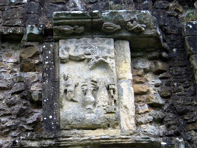 Annunciation of the Virgin Carved Panel Above Abbot's House, Rievaulx Abbey, North Yorkshire, England (J. Demetrescu 2006)