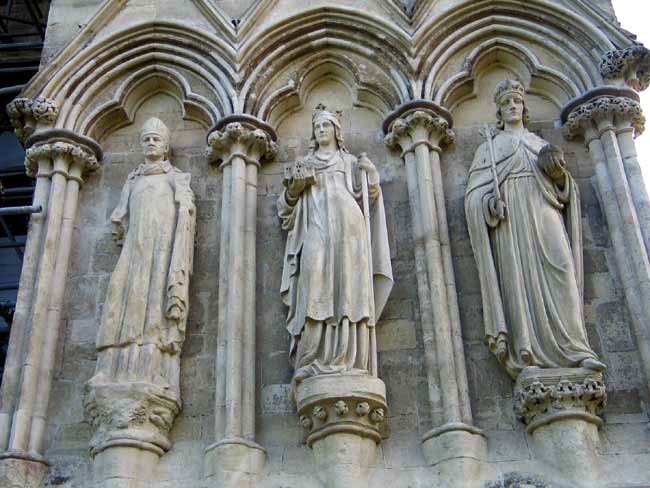 Close-Up of West Front Showing Statue Detail, Salisbury Cathedral, Wiltshire, England (J. Demetrescu 2005)