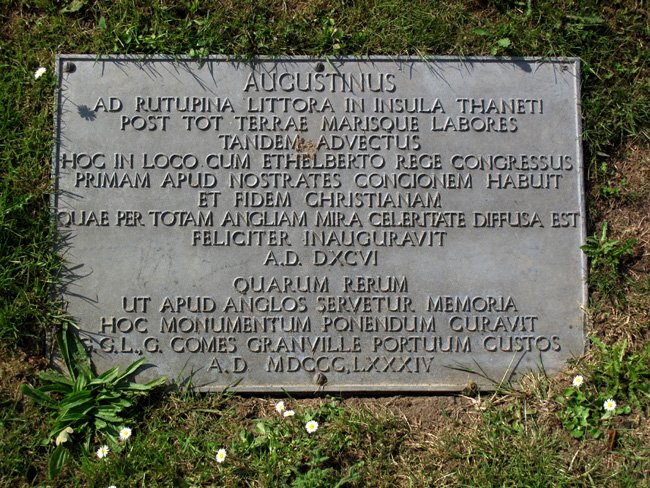 Plaque in Latin Installed at 1884 Erection of St. Augustine's Cross, Kent, England (J. Demetrescu 2011)