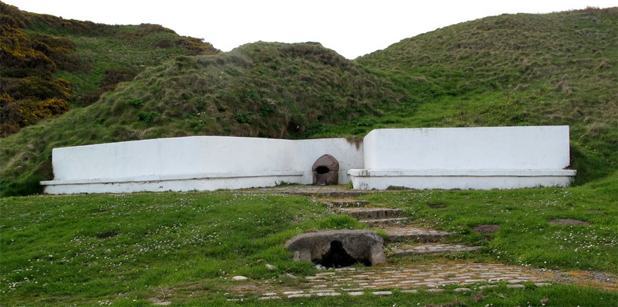 St. Drostan's Well is situated near the shore off a minor road that is off the B9031 in Aberdeenshire, Scotland. There is a carpark at the beach, and the well is just to the east of the carpark at the base of a hill.
