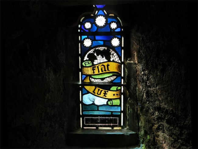 Fiat Lux Stained-Glass Window on Upper Level of St. Magnus Cathedral, Mainland, Orkney, Scotland (J. Demetrescu 2017)