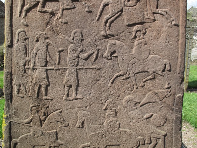 Close-Up of Part of 8th Century Pictish Stone in Churchyard, Aberlemno, Angus, Scotland (J. Demetrescu 2013)