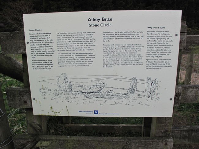 Descriptive Sign on Path Before Trail Through the Woods to the Aikey Brae Stone Circle, Aberdeenshire, Scotland