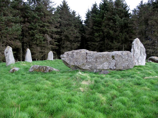 The Three Upright Stones, the Recumbent Stone, and the Flanker Stone of the Aikey Brae Stone Circle, Aberdeenshire, Scotland