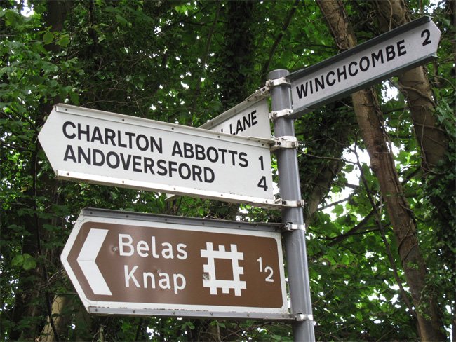 Road Sign for Belas Knap Long Barrow, Gloucestershire, England (J. Demetrescu 2011)