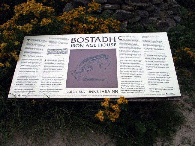 Descriptive Sign at Bostadh Iron Age House, Lewis, Western Isles, Scotland (J. Demetrescu 2007)