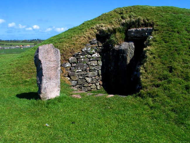 Standing Stone (replica) at Rear of Chamber to Bryn Celli Ddu, Anglesey, Wales (J. Demetrescu 2009)