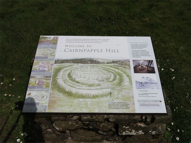Descriptive Sign at the Cairnpapple Hill Cairn and Henge Site, West Lothian, Scotland (J. Demetrescu 2022)