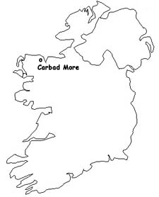Carbad More lies severely ruined in a field to the side of a farm road. A double court tomb, there is almost no trace of the covering cairns. Both galleries are covered in thick vegetation. At either end of the remains of a cairn are the remnants of two almost circular courts, each leading into its own segmented gallery. The larger court is about 25 feet in diameter.