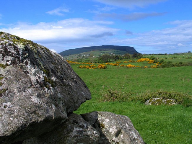 Knocknarea and Queen Maeve's Cairn from Tomb 7, Carrowmore, County Sligo, Ireland (J. Demetrescu 2009)