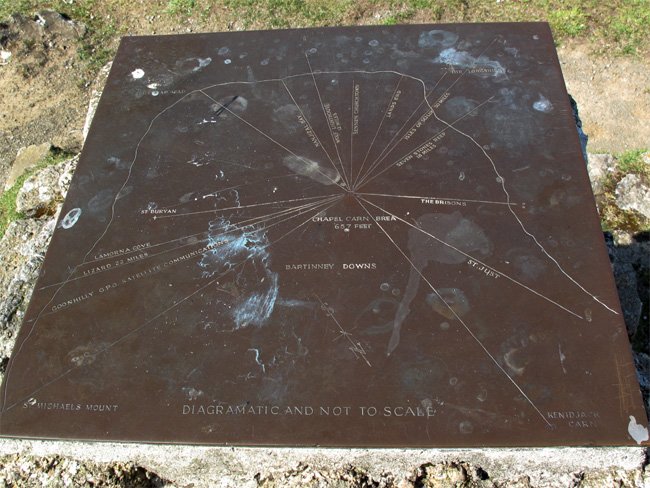 Topograph and Distances from Chapel Carn Brea Hill, Cornwall, England (J. Demetrescu 2011)