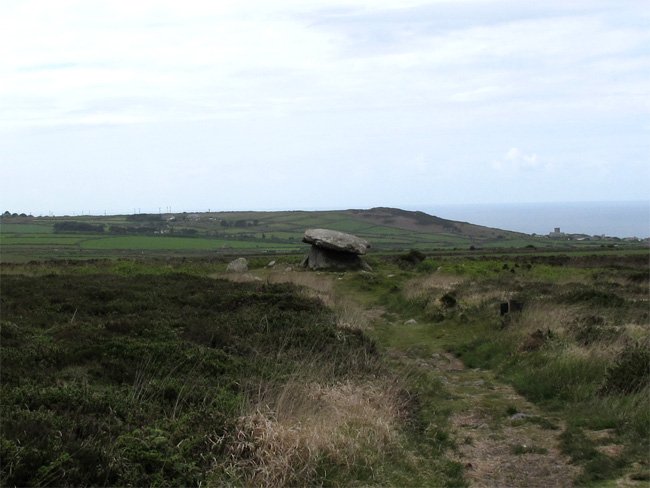 Approaching Chun Quoit from Chun Castle, Cornwall, England (J. Demetrescu 2011)