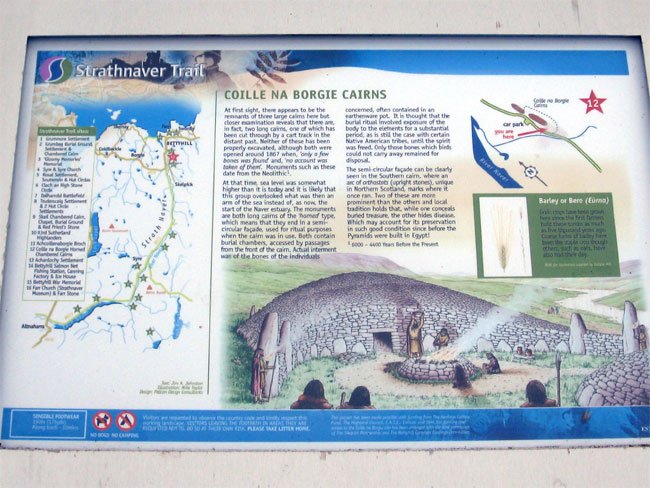 Descriptive Sign at Coille na Borgie Horned Chambered Cairns Site, Highland, Scotland (J. Demetrescu 2013)