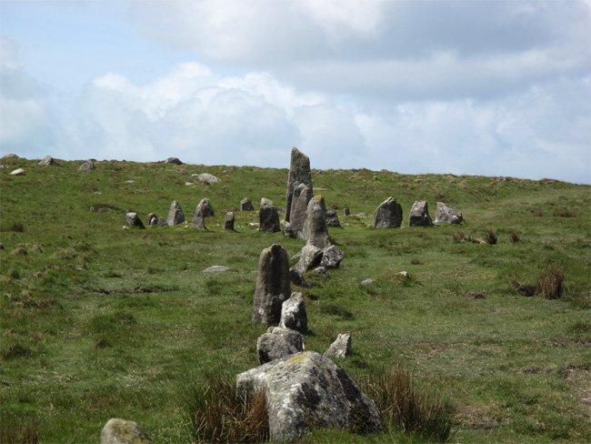 Looking Back at the Cairn Circle Along the Stone Row, Devon, England (J. Demetrescu 2011)
