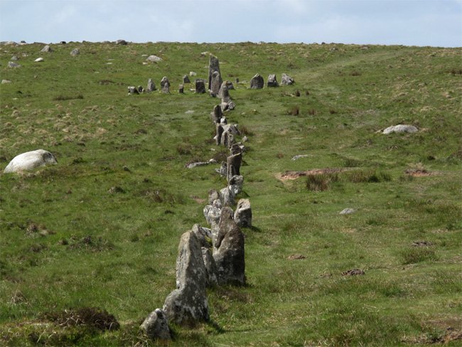 Looking Back at the Cairn Circle Along the Stone Row, Devon, England (J. Demetrescu 2011)