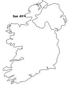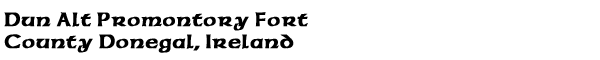 Archaeologists believe that the Celts who settled in the Glencolmcille area about 300 B.C. built the ruined promontory fort at Dun Alt and the stone fort above An Tra Bhan (the beach also known as the Silver Strand) in Malin Beg. Situated in easily defended locations, both are comparatively small and were probably only used when the community was in danger of attack. The remains of defensive walls and the ruins of a small house may be seen, and the foundations of a lookout post are found east of the fort. (Reference: Michael Herity, Gleanncholmcille: A Guide to 5,000 Years of History in Stone. Dublin: Na Clocha Breaca, 1998)