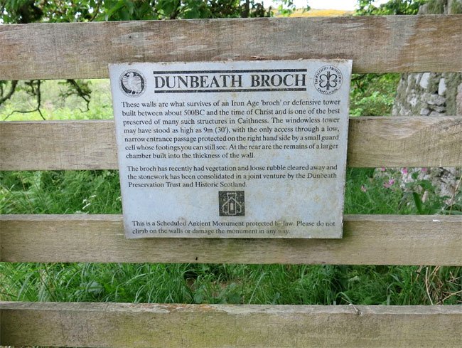 Older signage at Dunbeath Broch, Highland, Scotland (J. Demetrescu 2022)