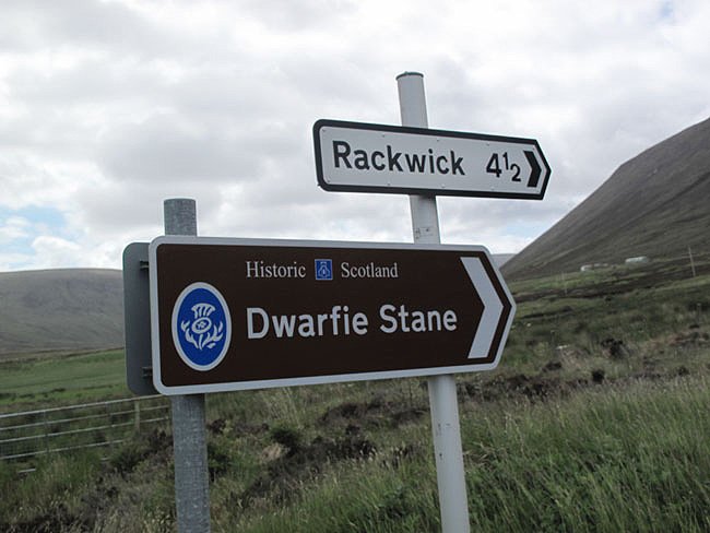 Road Sign for the Dwarfie Stane, Hoy, Orkney, Scotland (J. Demetrescu 2010)