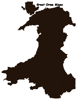 on the Creuddyn Peninsula dates back to the Bronze Age. The mines were originally dug out over 3,500 years ago by miners using nothing more than stone and bone tools. There are over 3-1/2 miles of tunnels on the Great Orme headland, created as Bronze Age man worked the veins of Malachite.