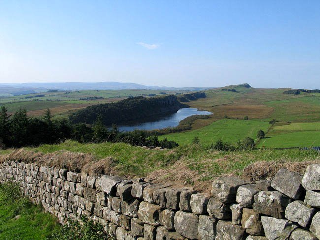 Hadrian's Wall Between Housesteads and Steel Rigg with Crag Lough in the Distance, Northumberland, England
