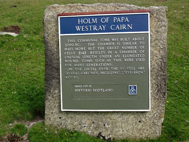 Historic Scotland Sign at Holm of Papa Westray South Chambered Cairn, Orkney, Scotland (J.Demetrescu 2010)
