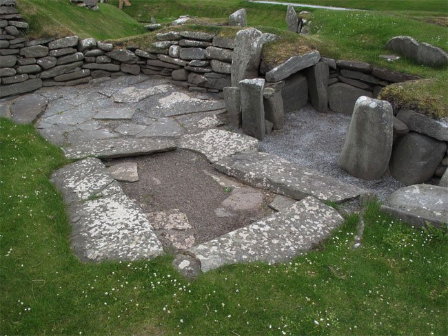 Iron Age Dwelling and Souterrain Entrance (right) at Jarlshof Settlement,