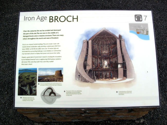 Iron Age Broch Descriptive Sign at Jarlshof Settlement, South Mainland, Shetland, Scotland (J. Demetrescu 2010)