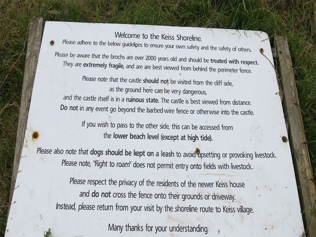 Sign at Keiss Harbor Before Keiss Broch, Highland, Scotland (J. Demetrescu 2022)