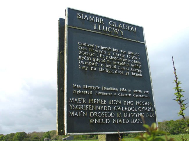 Sign in Welsh at Lligwy Burial Chamber, Anglesey, Wales (J. Demetrescu 2009)