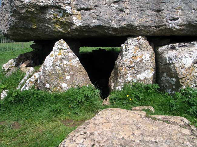Close-Up of Capstone Balancing on Upright Stones, Lligwy Burial Chamber, Anglesey, Wales (J. Demetrescu 2009)