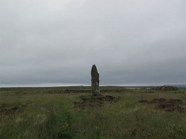 Approaching the Mor Stein Standing Stone, Orkney, Scotland (J. Demetrescu 2010)