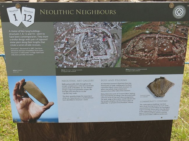 Information Sign for Structures 1 and 12 at the Ness of Brodgar Excavation Site in 2017, Mainland, Orkney, Scotland