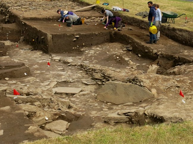 Close-Up of Trench T at Ness of Brodgar Excavation Site, July 2017, Mainland, Orkney, Scotland (J. Demetrescu 2017)