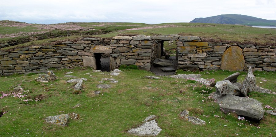 Located on the Ness of Burgi is a classic example of a Shetland blockhouse fort, a defensive building once over 70 feet long and sealing off the rest of a headland.