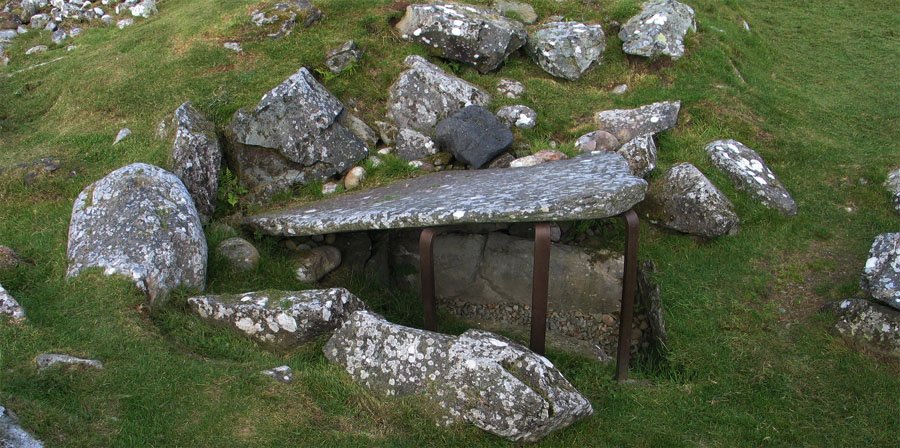 Cist and Capstone Upheld by Steel Bars, Nether Largie Mid Cairn