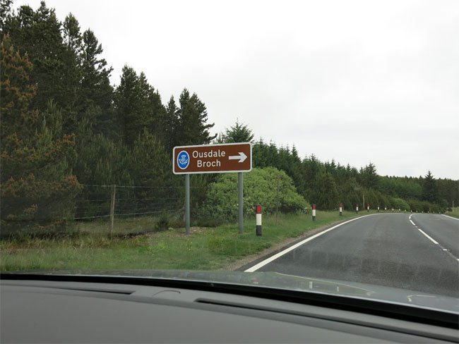 Ousdale Broch Sign on A9 Road, Highland, Scotland (J. Demetrescu 2022)