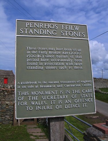Sign at Penrhos Feilw Standing Stones, Anglesey, Wales