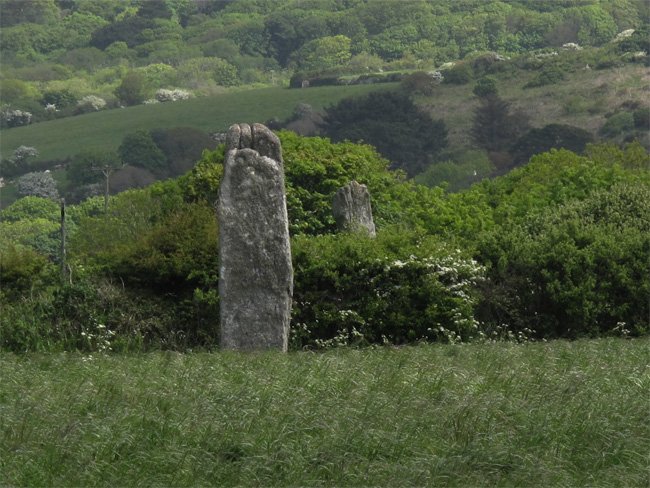 Telephoto View from the Road: The Two Pipers Standing Stones Near the Merry Maidens, Cornwall, England (J. Demetrescu 2011)