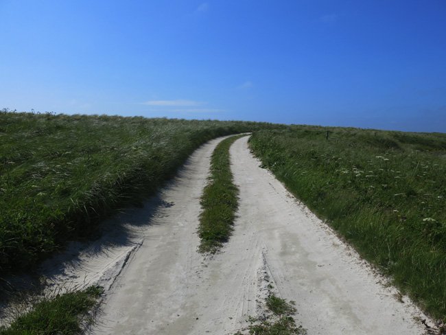 Road to Quoyness Chambered Cairn on the Els Ness Peninsula, Sanday, Orkney, Scotland (J. Demetrescu 2017)