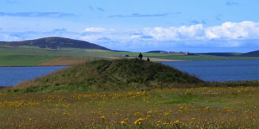 Located in close proximity to the southwest of the Ring of Brodgar, Salt Knowe is the largest of the several mounds in the area at 131 feet by 108 feet and nearly 20 feet high.