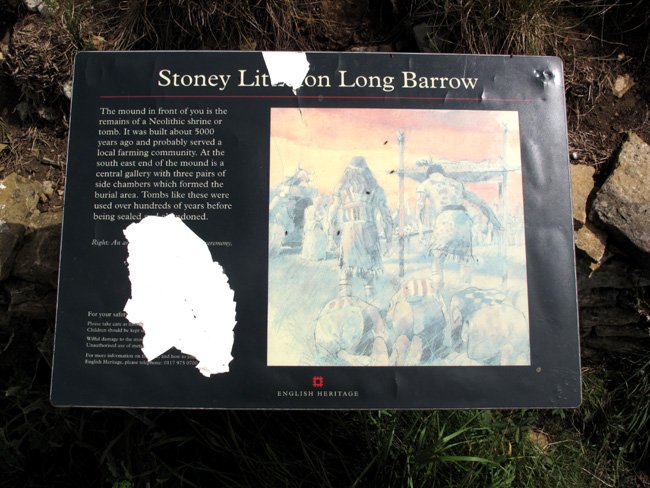 Damaged English Heritage Sign for Stoney Littleton, Somerset, England (J. Demetrescu 2011)
