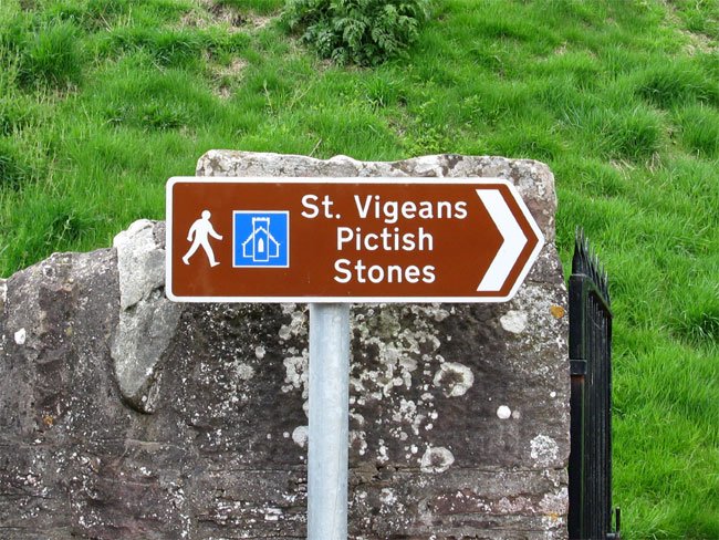 Road Sign for St. Vigeans Pictish and Medieval Stones Museum, Angus, Scotland (L. Demetrescu 2013)