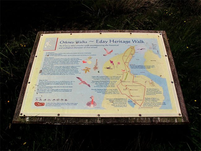 Descriptive Sign for the Heritage Walk Leading to the Vinquoy Chambered Cairn, Eday, Orkney, Scotland (J. Demetrescu 2010)